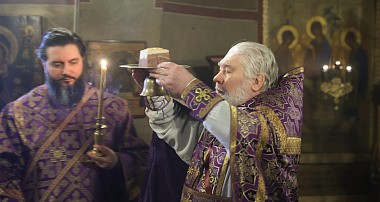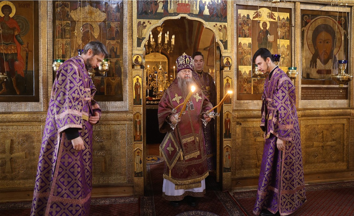 Его Высокопреосвященству сослужили епископ Солнечногорский Алексий, наместник Данилова ставропигиального мужского монастыря, братия обители в священном сане.
