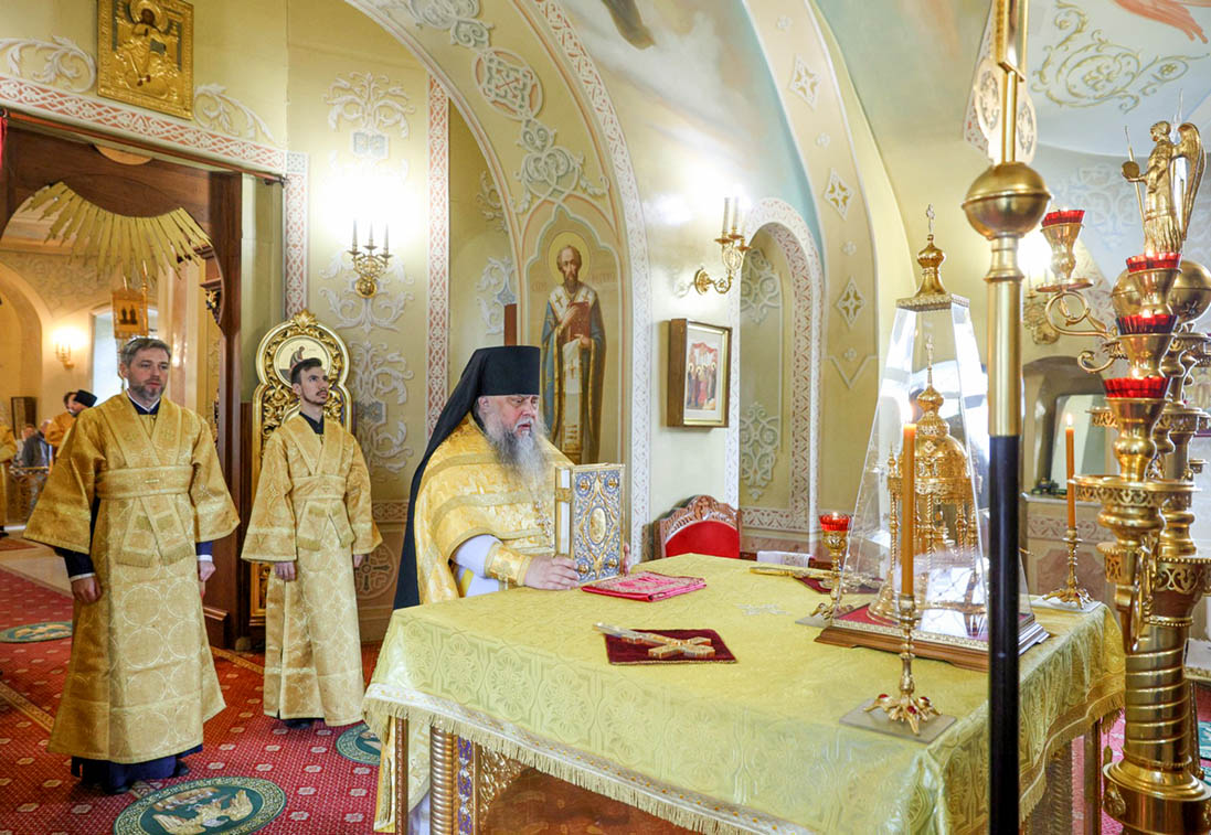 Его Высокопреосвященству сослужили наместник Екатерининского монастыря епископ Видновский Тихон, настоятель храма в честь святого великомученика Георгия Победоносца в г. Видное протоиерей Михаил Егоров, братия обители в священном сане.