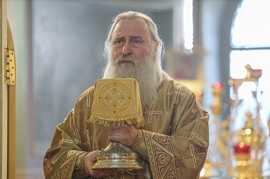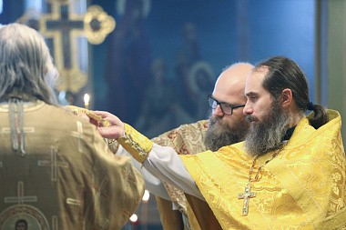 Его Высокопреосвященству сослужили клирики монастыря.
