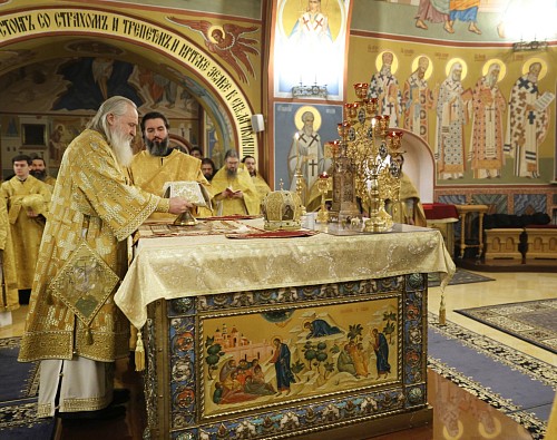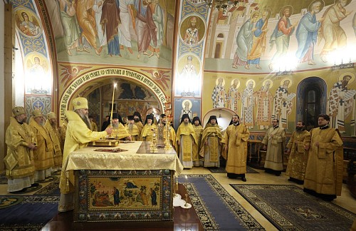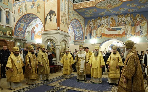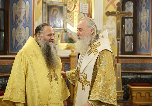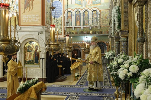 Его Высокопреосвященству сослужили председатель Комиссии по организации жизни монастырей и монашества Межсоборного присутствия Русской Православной Церкви митрополит Нижегородский и Арзамасский Георгий, митрополит Саранский и Мордовский Зиновий, митрополит Воронежский и Лискинский Леонтий, епископ Выксунский и Павловский Гедеон, епископ Ардатовский и Атяшевский Мелетий, епископ Можайский Иосиф, епископ Урюпинский и Новоаннинский Елисей, епископ Россошанский и Острогожский Дионисий, епископ Борисоглебский и Бутурлиновский Сергий.