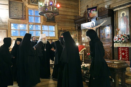 Его Высокопреосвященству сослужили клирики Зачатьевского монастыря.