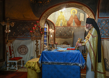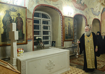 Перед началом Литургии митрополит Феогност отслужил литию по приснопамятному архимандриту Петру (Афанасьеву), похороненному в южном приделе храма святого Александра Невского.