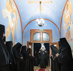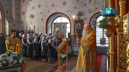 За богослужением молились настоятельница обители игумения Антония (Минина) с сестрами, настоятельница Никольского Шостьенского ставропигиального женского монастыря игумения Неонилла (Фролова) с сестрами, а также учащие и учащиеся женской Александровской православной гимназии.