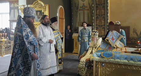 Его Высокопреосвященству сослужили заместитель председателя Синодального отдела по монастырям и монашеству архимандрит Стефан (Тараканов), настоятель храма Рождества Пресвятой Богородицы в Олбани (штат Нью-Йорк, США) протоиерей Алексий Дункан и монастырское духовенство.