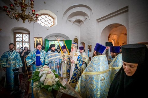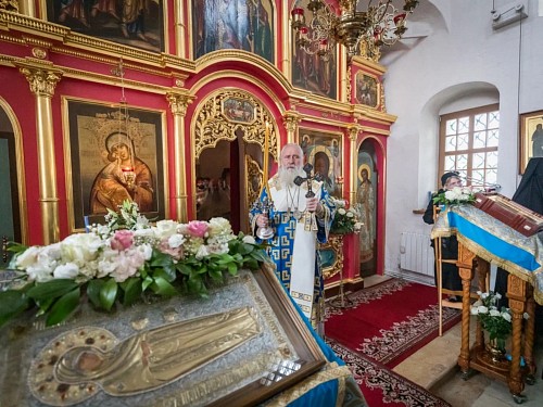 Его Высокопреосвященству сослужили клирики обители.