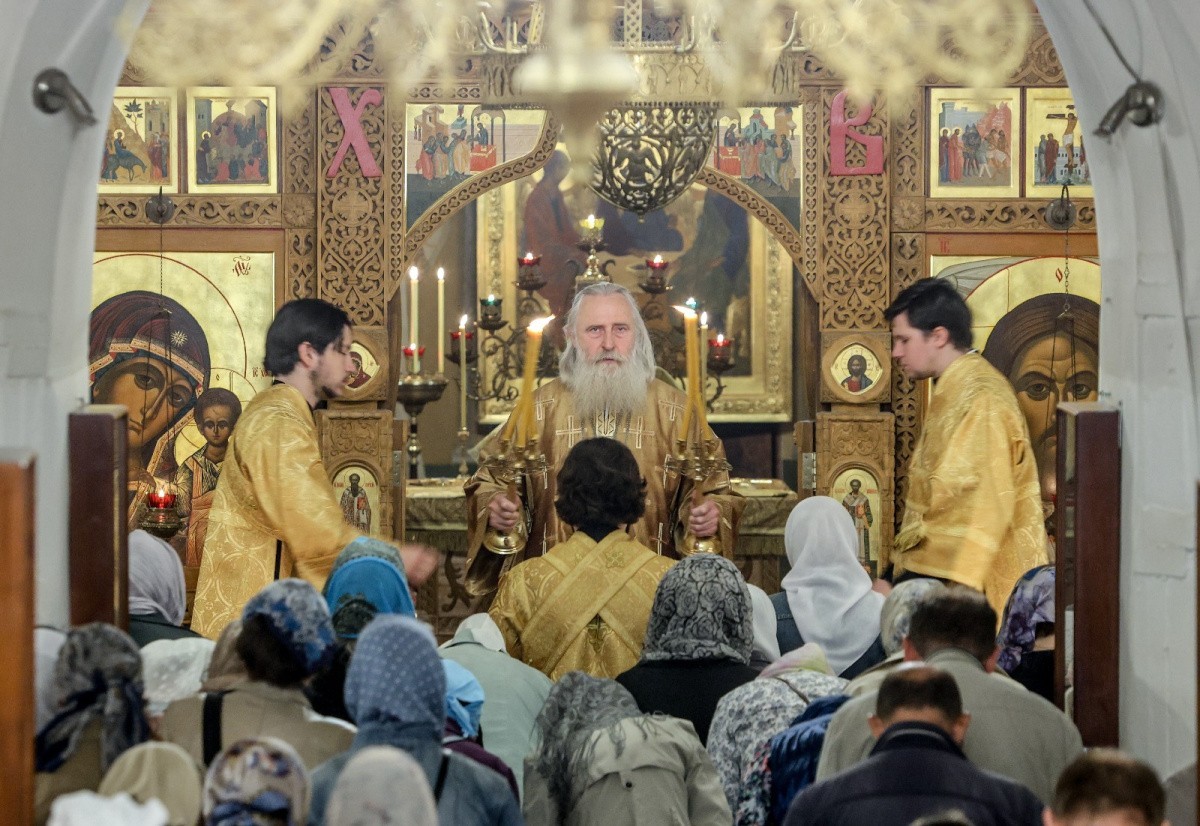 Его Высокопреосвященству сослужили и.о. наместника Заиконоспасского монастыря иеромонах Даниил (Константинов), братия обители в священном сане.