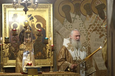 После крестного хода митрополит Феогност обратился к собравшимся с архипастырским словом.
