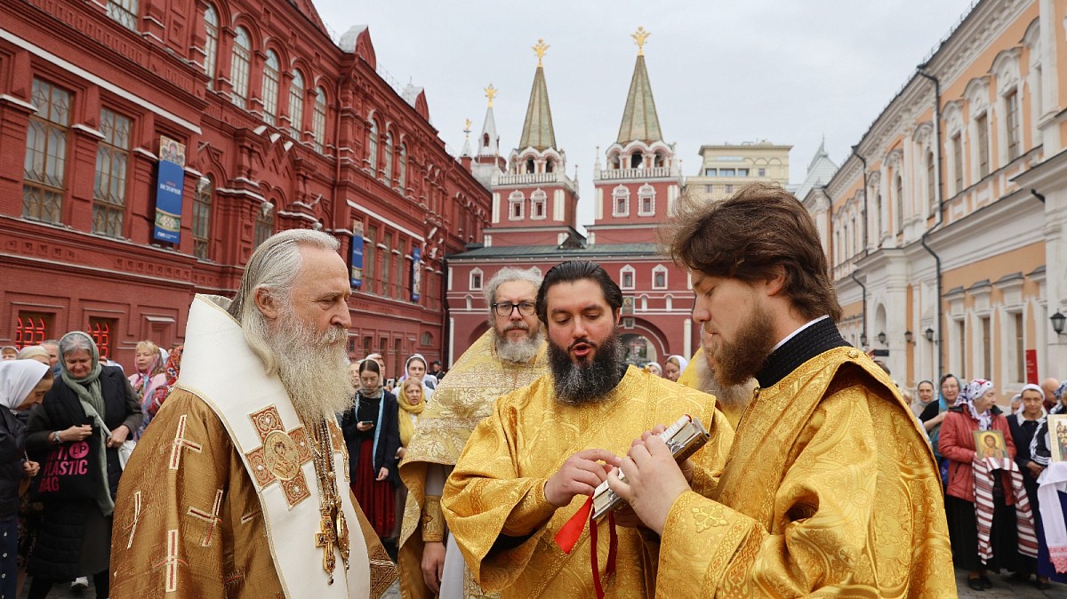 По заамвонной молитве состоялся крестный ход. Торжественная процессия прошла от Заиконоспасского монастыря по Никольской улице к месту, где находился Николо-Греческий монастырь, затем к Воскресенским воротам, далее к Казанскому собору на Красной площади и возвратилась в Заиконоспасскую обитель.