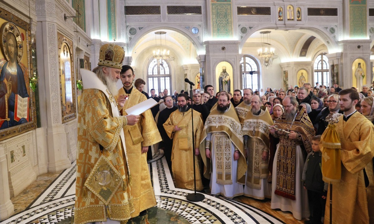 23 февраля 2024 года председатель Синодального отдела по монастырям и монашеству митрополит Каширский Феогност, наместник Донского ставропигиального монастыря, возглавил служение Божественной литургии в соборе Воскресения Христова и новомучеников и исповедников Церкви Русской Сретенского ставропигиального мужского монастыря Москвы.