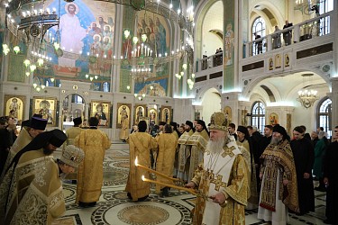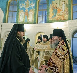 Высокопреосвященному владыке сослужили наместник Сретенского монастыря, и.о. ректора Сретенской духовной академии игумен Иоанн (Лудищев) и братия обители в священном сане.