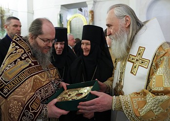 Все присутствующие на богослужении пропели многолетие. В алтаре владыка поздравил юбиляра от Синодального отдела по монастырям и монашеству и подарил икону – Смоленский образ Божией Матери, а также несколько томов книжной серии «Воспоминания соловецких узников 1923–1939 гг.» – проекта Информационно-издательского отдела Соловецкого ставропигиального монастыря.