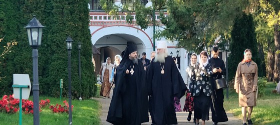 По окончании богослужения состоялся крестный ход вокруг Успенского собора с молебным пением преподобному Иосифу.