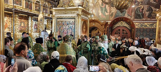 В сам день праздника в Успенском соборе монастыря председатель Синодального отдела по монастырям и монашеству, наместник Донского ставропигиального мужского монастыря митрополит Каширский Феогност совершил Божественную литургию.