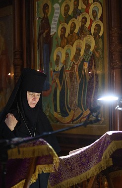 Его Высокопреосвященству в Алексеевском храме сослужили старший священник и духовник монастыря протоиерей Артемий Владимиров, клирики обители.