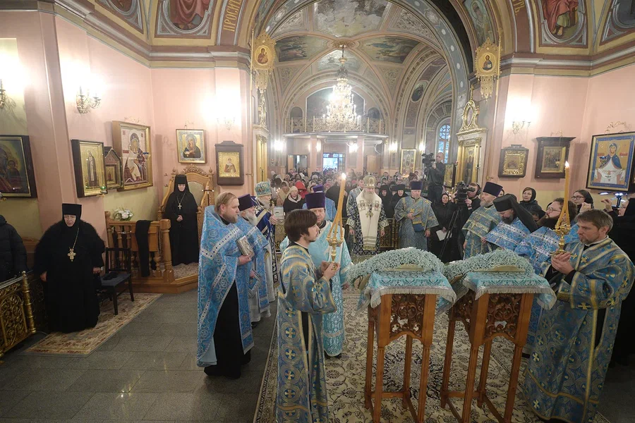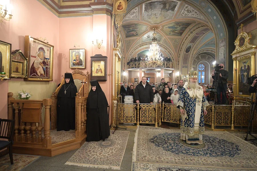 За богослужением молились настоятельница монастыря игумения Феофания (Мискина) с сестрами, настоятельница Введенского Толгского монастыря в Ярославле игумения Варвара (Третьяк), воспитанницы монастырского детского приюта, прихожане и паломники.