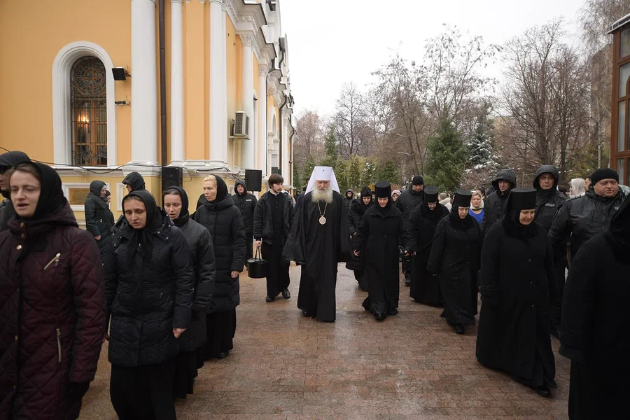 По окончании Литургии состоялся молебен и крестный ход вокруг Воскресенского собора обители. У мощей блаженной Матроны Московской владыка Феогност прочитал молитву праведной старице. На протяжении всего крестного хода духовенство окропляло многочисленных верующих святой водой.