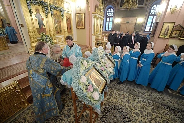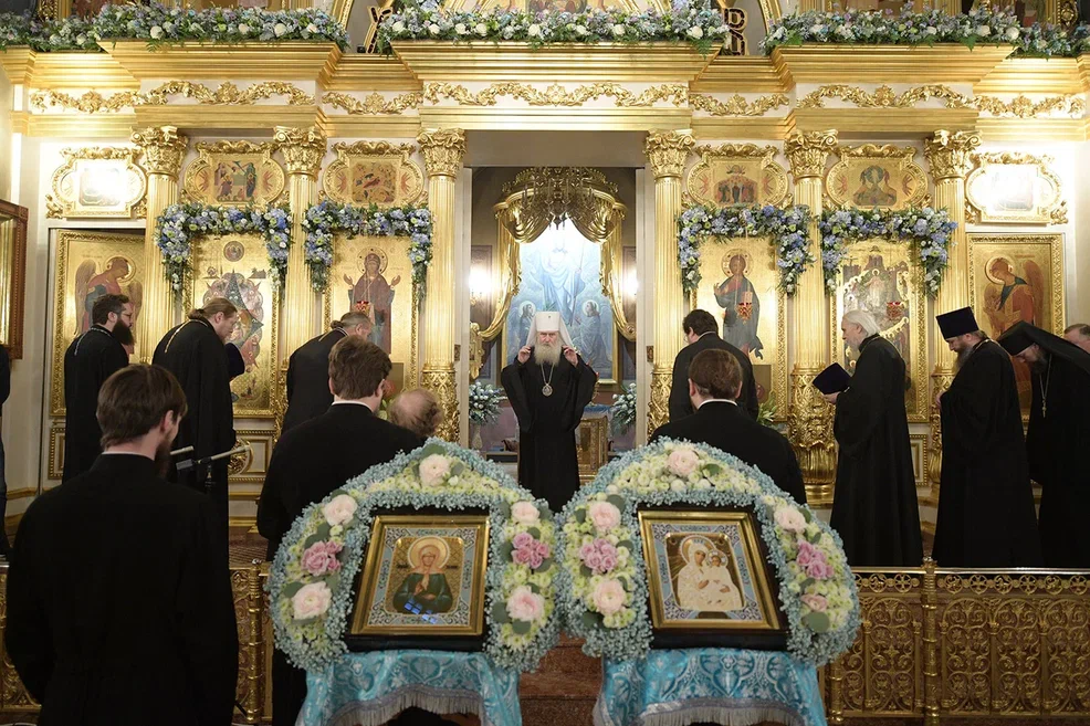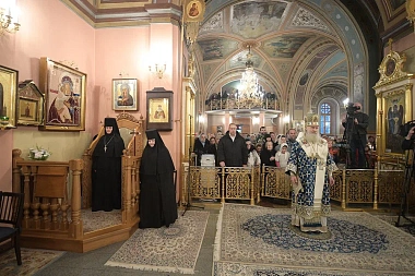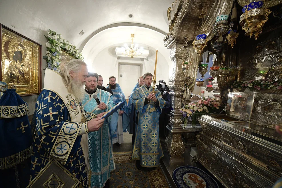 По прибытии в обитель митрополит Феогност поклонился честным мощам блаженной Матроны Московской.