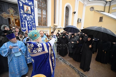 22 ноября 2022 года, в праздник иконы Божией Матери «Скоропослушница», день тезоименитства и день рождения блаженной Матроны Московской, по благословению Святейшего Патриарха Московского и всея Руси Кирилла, председатель Синодального отдела по монастырям и монашеству, наместник Донского ставропигиального мужского монастыря митрополит Каширский Феогност возглавил позднюю Божественную литургию в Воскресенском соборе Покровского ставропигиального женского монастыря города Москвы.
