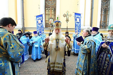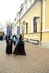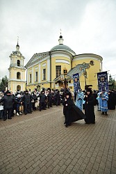 По окончании Литургии состоялся молебен и крестный ход вокруг Воскресенского собора обители. У мощей блаженной Матроны Московской митрополит Феогност прочитал молитву праведной старице. На протяжении всего крестного хода духовенство окропляло многочисленных верующих святой водой.