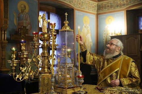 В храме Покрова Пресвятой Богородицы накануне этой памятной даты состоялось торжественное всенощное бдение, которое возглавил архимандрит Мелхиседек.