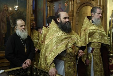 Архимандриту Мелхиседеку сослужили братия обители в священном сане, клирики храма.
