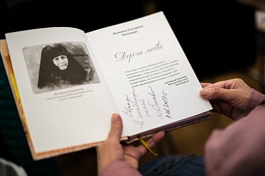 Перед тем, как подписать желающим книги, игумения Елисавета отметила в своем слове, что ей особенно отрадно, что ее творческий вечер проходит в Высоко-Петровском монастыре: именно здесь в 1998 году она приняла монашеский постриг.