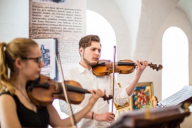 Музыкальное сопровождение обеспечили члены молодежного клуба Высоко-Петровского монастыря «Петровцы». Они исполнили для гостей скрипичные произведения И.С. Баха.