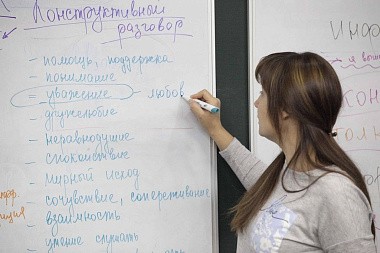 Вместе с педагогами участники тренинга разобрали, что такое конфликт и когда он позитивно влияет на отношения с другими, а когда их разрушает. Ребята сами сделали вывод о том, что достаточно важным в проблемном разговоре является личное отношение к собеседнику и понимание того, «чего я хочу от этого общения: хочу доказать другому, что прав именно я, или же хочу решить вместе с ним проблему так, чтобы были учтены интересы двух сторон».