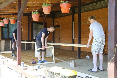 Летний семейный лагерь при обители действует уже восьмой год. Взрослые и дети, всего около 30 человек, активно участвовали в хозяйственных работах. Женщины трудились на монастырских огородах. Мужчины меняли пришедшие в негодность полы в здании летнего лагеря.