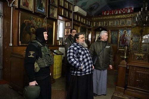 За короткое время они успели посетить несколько мест. И первым пунктом был отряд специального назначения «Скиф», где служит сотрудник Крестовоздвиженской Иерусалимской обители. Был отслужен молебен. Силами прихожан ребятам передали: ноутбук, пульты управления, дисковую пилу и фрезер, обогреватели теплэко, боевые костюмы, термобелье, духовные аптечки, мультитулы, продукты питания, медикаменты, согрелки и, конечно, сладкие рождественские подарки.