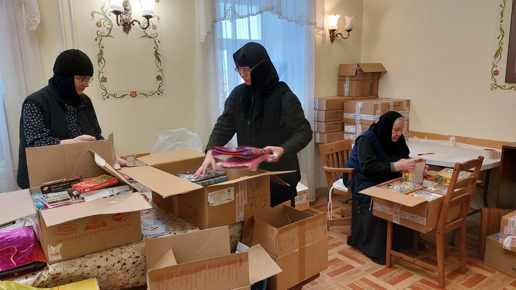 В дни, когда Святая Церковь радуется о воплощении и явлении миру Сына Божия, сестры Кресто-Воздвиженского Иерусалимского ставропигиального женского монастыря готовят подарки для детей и воинов Донбасса.