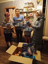 Детям подарили игрушки, сладкие наборы, пожилым передали продуктовые наборы, в которые вошли крупы, сахар, масло, консервы, чай, сладости. Также в подарки вошли фрукты, духовная литература и православные календари.