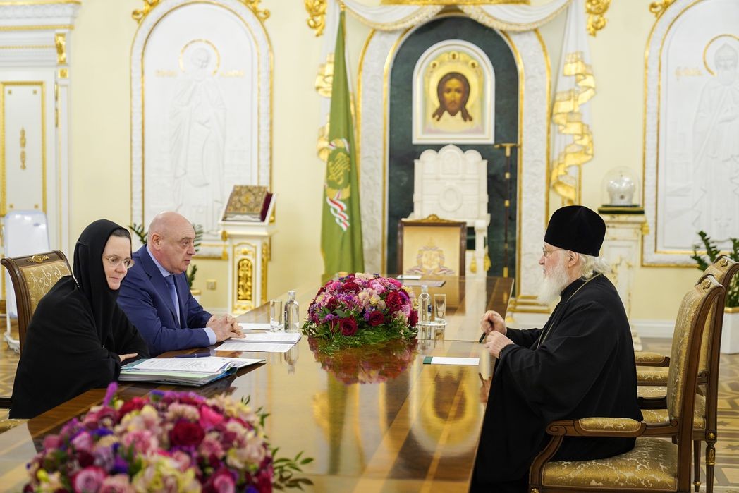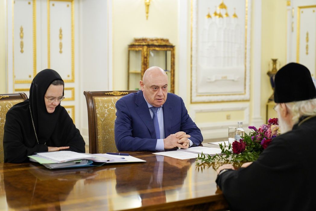 4 апреля в Патриаршей и Синодальной резиденции в Даниловом ставропигиальном монастыре в Москве состоялась рабочая встреча Святейшего Патриарха Московского и всея Руси Кирилла с председателем Совета Фонда по сохранению и развитию Соловецкого архипелага Леонидом Оскаровичем Ставицким.