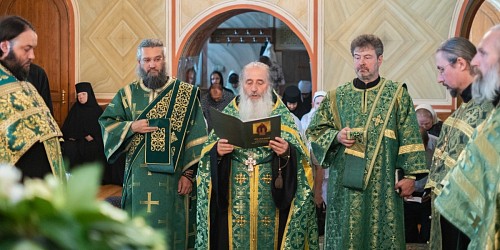 Поздняя Божественная литургия совершалась собором духовенства в Троицком храме монастыря, возглавил ее епископ Троицкий и Южноуральский Павел. Его Преосвященству сослужили клирики Стефано-Махрищского монастыря и его подворья в с.Талицы, гости обители в священном сане.