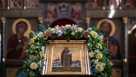 Завершил богослужение крестный ход, направившийся из Троицкого собора в храм преподобного Стефана Махрищского, где был совершен торжественный молебен у святых мощей преподобного.