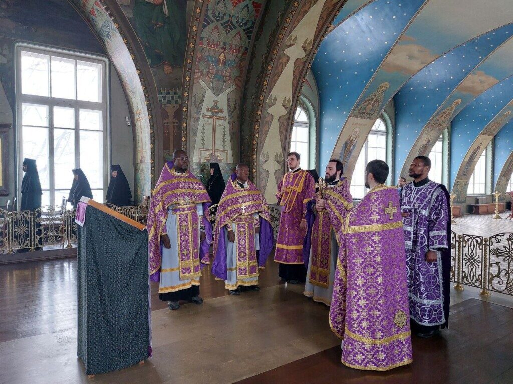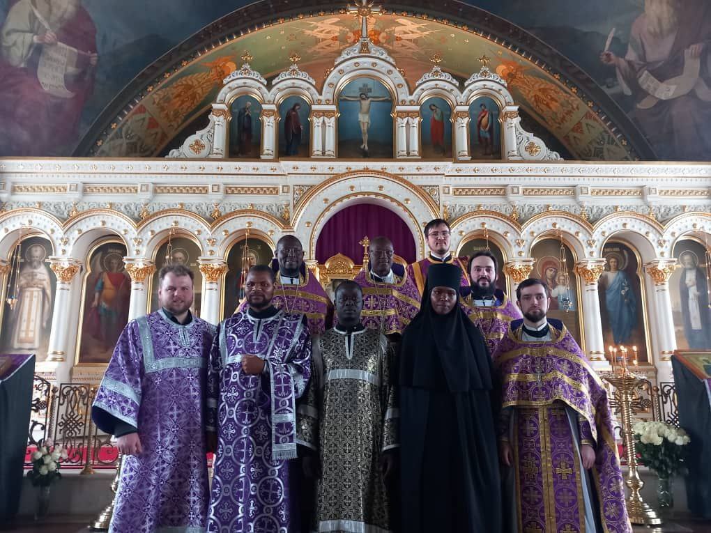 Богослужения совершили священнослужители Патриаршего экзархата Африки иерей Сергий Воемава (ЦАР), иерей Павел Эме (Камерун) и монастырское духовенство.