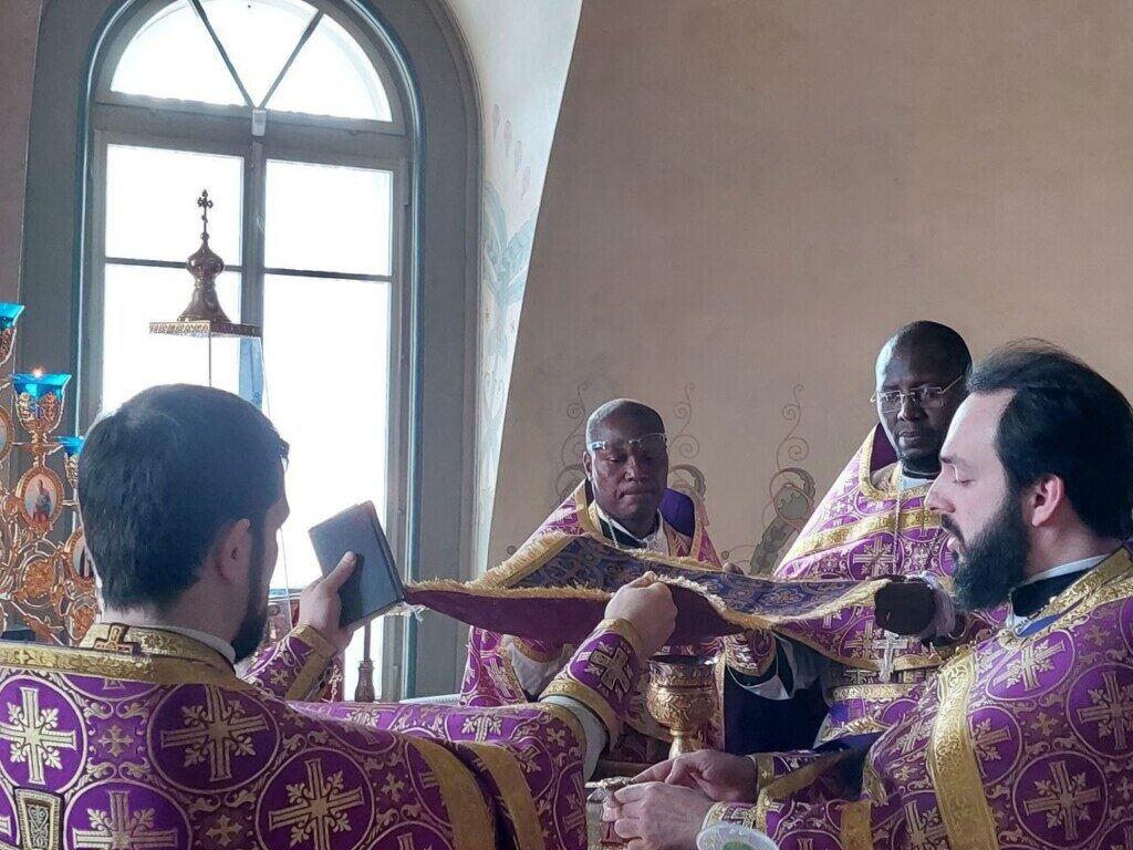 В богослужении участвовали иподиакон Парфений Дансу (Кот-д’Ивуар) и ответственный за работу со студентами сотрудник Патриаршего экзархата Африки Константин Гордица.