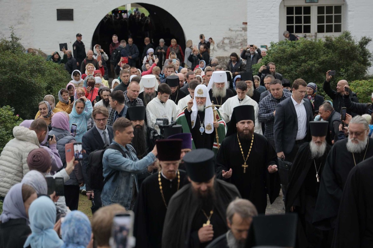 Вечером 19 августа 2023 года Святейший Патриарх Московский и всея Руси Кирилл прибыл в Спасо-Преображенский Соловецкий ставропигиальный мужской монастырь.