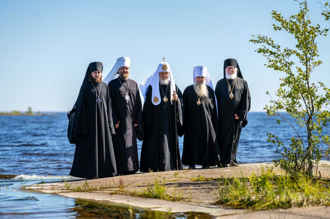 Предстоятель Русской Православной Церкви прибыл в скит в сопровождении наместника Валаамского монастыря епископа Троицкого Панкратия и личного секретаря Его Святейшества епископа Раменского Алексия.