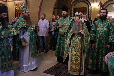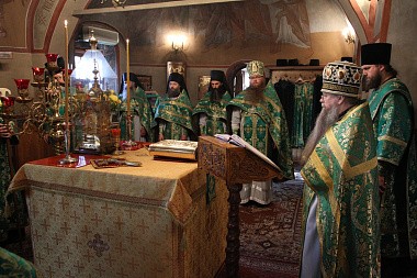 По окончании богослужения заместитель председателя Синодального отдела по монастырям и монашеству архимандрит Стефан (Тараканов) передал наместнику Даниловой обители поздравление с днем тезоименитства от Святейшего Патриарха Московского и всея Руси Кирилла.