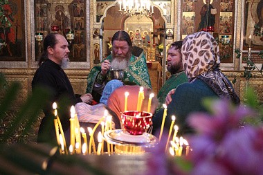 За праздничной Божественной литургией архимандриту Алексию сослужили: заместитель председателя Синодального отдела по монастырям и монашеству архимандрит Стефан (Тараканов); братия Даниловой обители в священном сане.