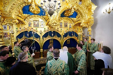 Из аэропорта Святейший Патриарх Кирилл направился в Соловецкий монастырь. В Троицком соборе Соловецкой обители Святейшего Патриарха встречали: заместитель председателя Правительства Российской Федерации, сопредседатель Попечительского совета Фонда по сохранению и развитию Соловецкого архипелага Д.Н. Чернышенко, губернатор Санкт-Петербурга А.Д. Беглов, первый заместитель министра культуры РФ С.Г. Обрывалин, председатель Совета Фонда по сохранению и развитию Соловецкого архипелага А.В. Гуц; братия обители.