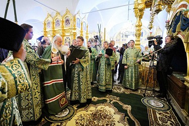 Святейший Владыка поклонился мощам преподобных Зосимы, Савватия и Германа Соловецких.