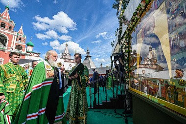По окончании Литургии Святейший Владыка совершил славление и молитву преподобному Савве Сторожевскому у иконы святого.