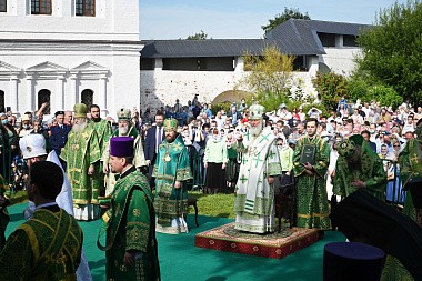По прибытии в монастырь Святейший Владыка поклонился честным мощам преподобного Саввы Сторожевского, покоящимся в древнем соборе Рождества Пресвятой Богородицы.
