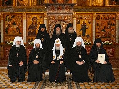 Святейший Владыка поблагодарил наместника монастыря архимандрита Павла (Кривоногова) и в благодарность за труды на благо Святой Церкви вручил ему крест, изготовленный к 10-летию Поместного Собора Православной Церкви 2009 года и интронизации Его Святейшества.