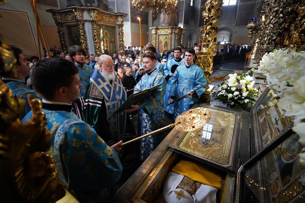 7 апреля 2024 года, в Неделю 3-ю Великого поста, Крестопоклонную, праздник Благовещения Пресвятой Богородицы, день преставления святителя Тихона, Патриарха Московского и всея России (1925), по окончании Божественной литургии в Благовещенском соборе Московского Кремля, Святейший Патриарх Московский и всея Руси Кирилл посетил Донской ставропигиальный мужской монастырь г. Москвы, где находится рака с честным мощами святителя Тихона.