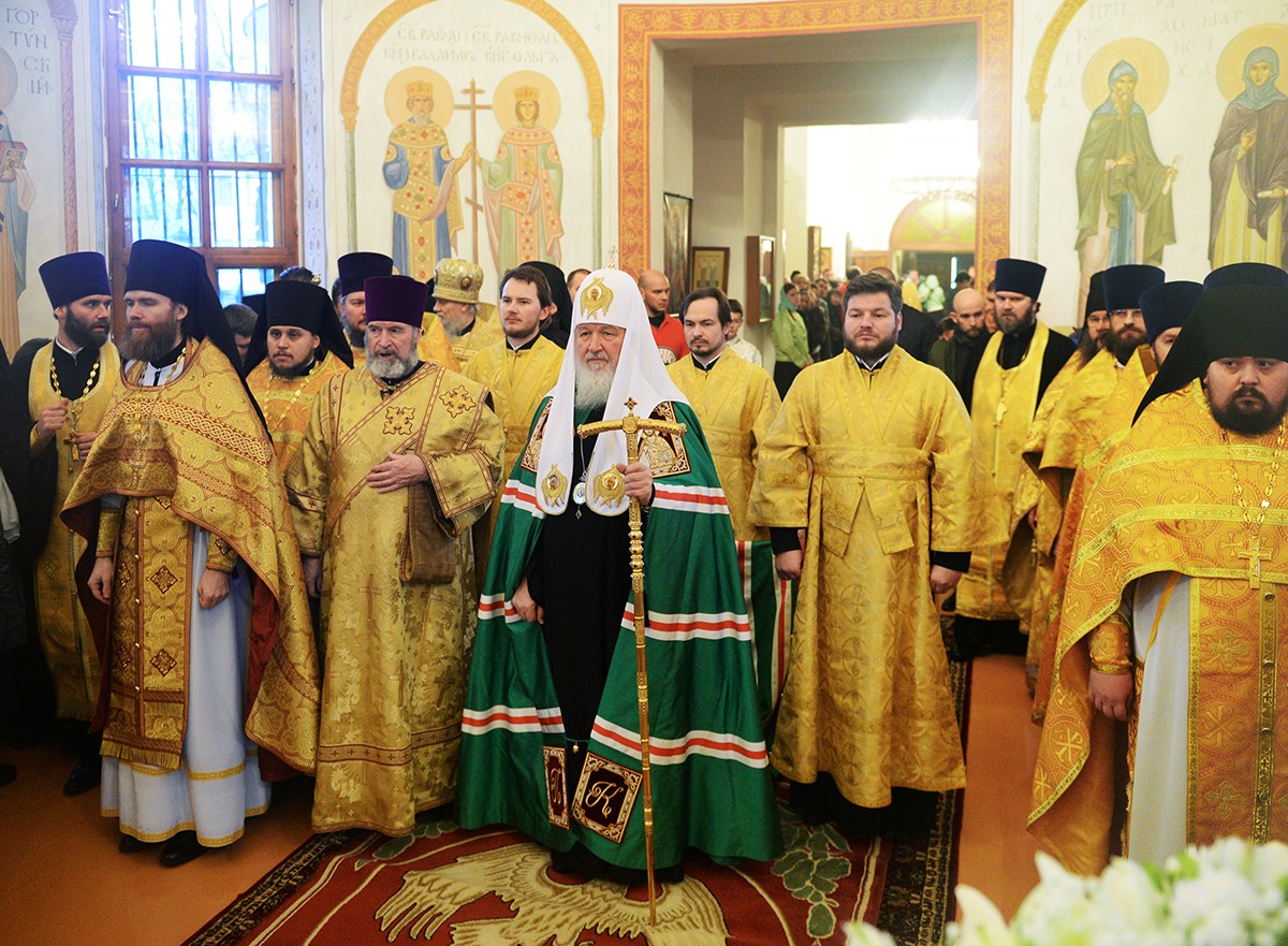 После сугубой ектении Предстоятель Русской Церкви вознес молитву о мире на Украине.