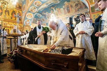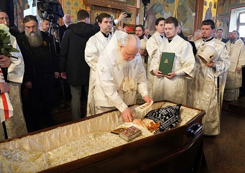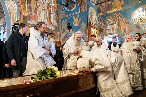 Святейший Владыка совершил заупокойную литию у могилы новопреставленного.