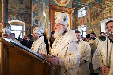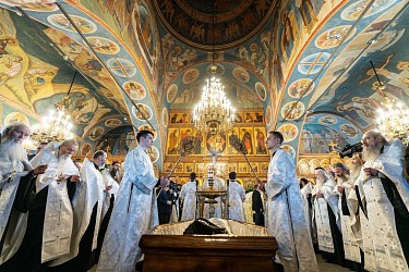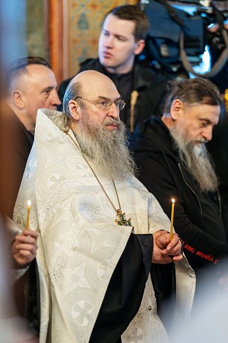 Богослужебные песнопения исполнил братский хор Введенского ставропигиального монастыря Оптина пустынь под управлением иеродиакона Гедеона (Федорова).